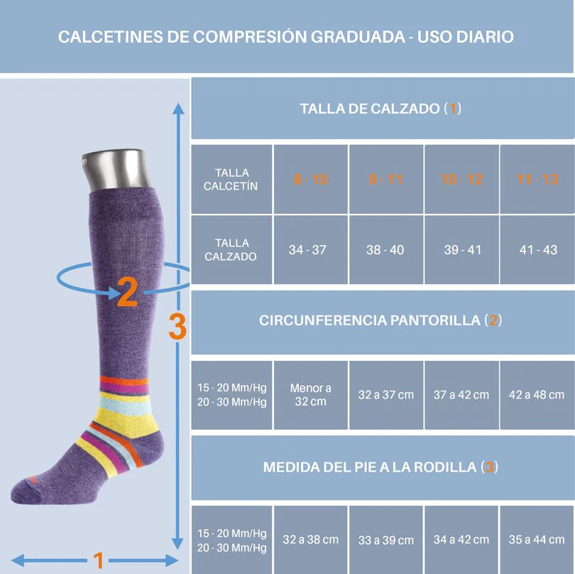 * Para uso diario o permanecer mucho tiempo en la misma posición es recomendable usar nuestros calcetines en lugar de las pantorrilleras.